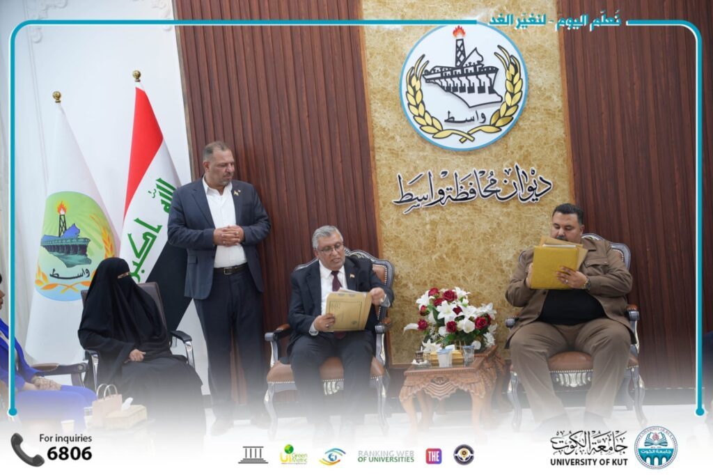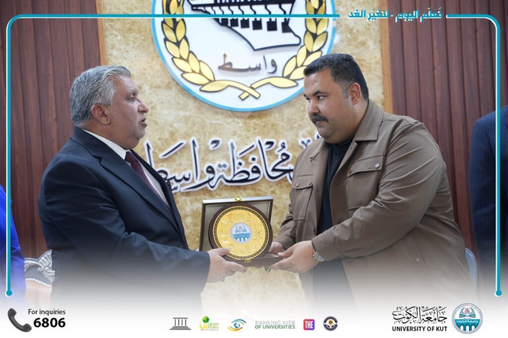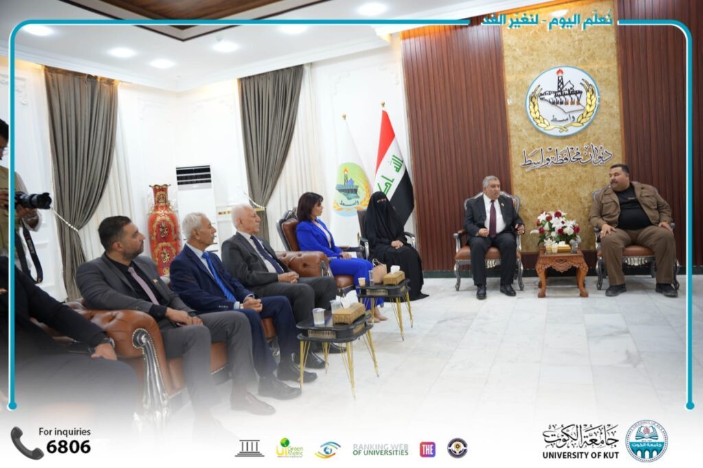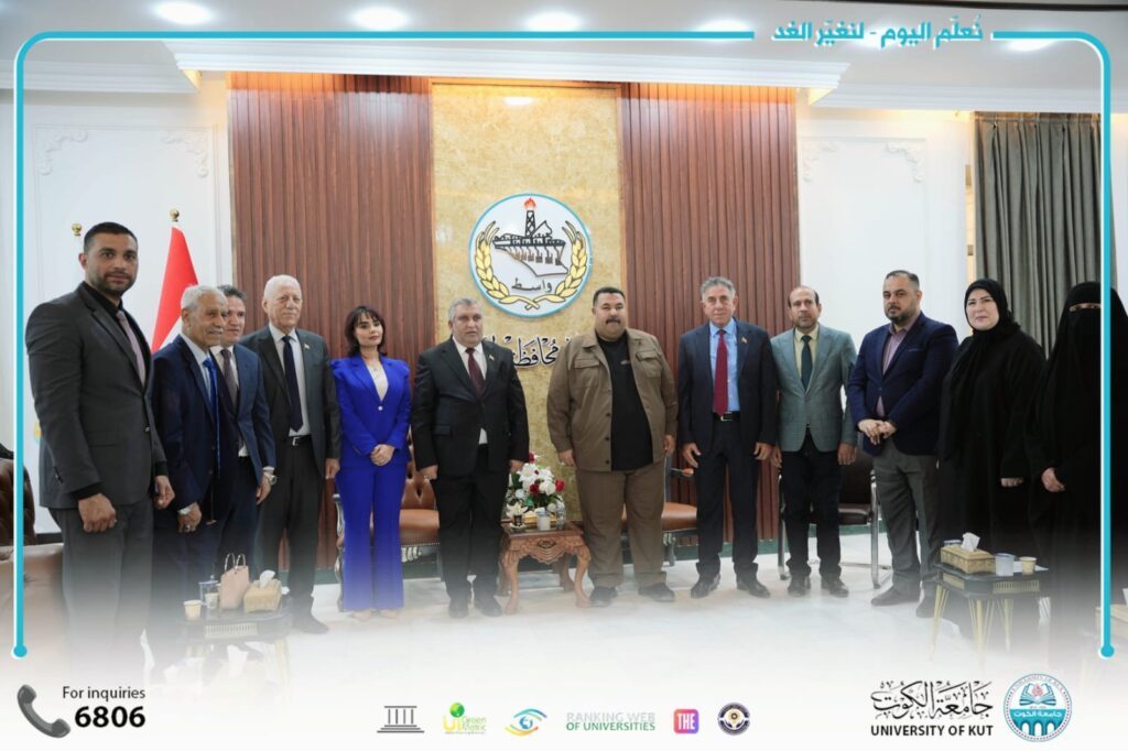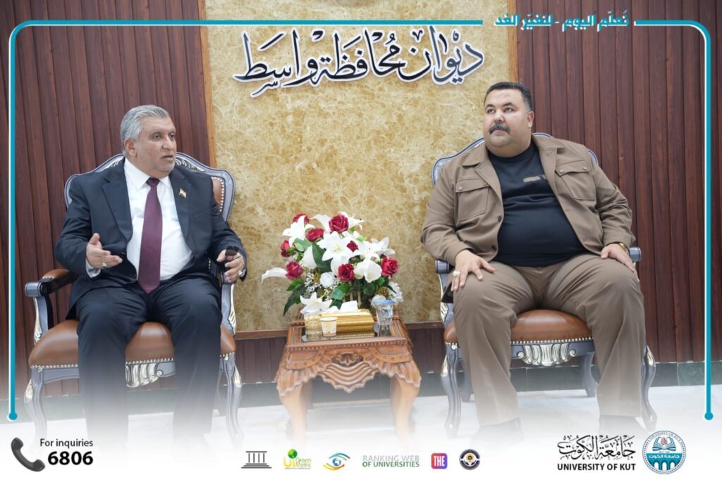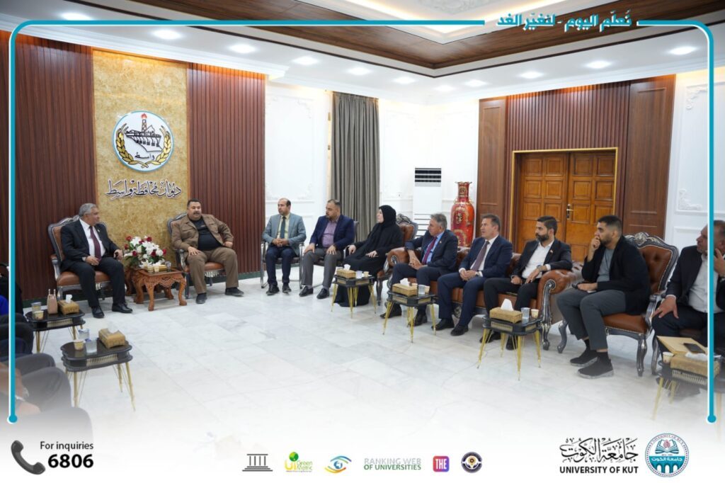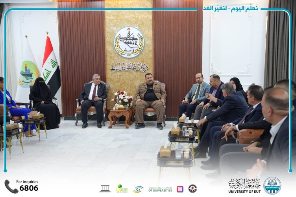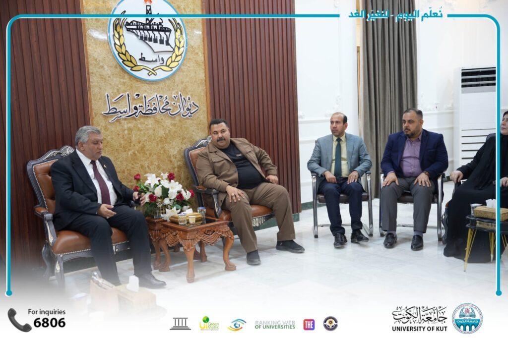 وجرى خلال الزيارة بحث سبل تعزيز التعاون بين الجامعة والحكومة المحلية، والإفادة من الخبرات الأكاديمية والبحثية بما يسهم في خدمة محافظة واسط وتطوير مؤسساتها.